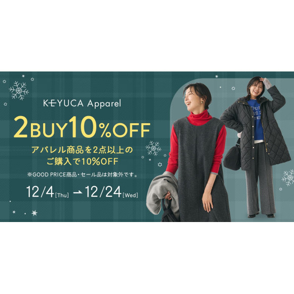 购买2件服装商品可以打10%折扣,优惠活动将持续到12/24(星期三)♪